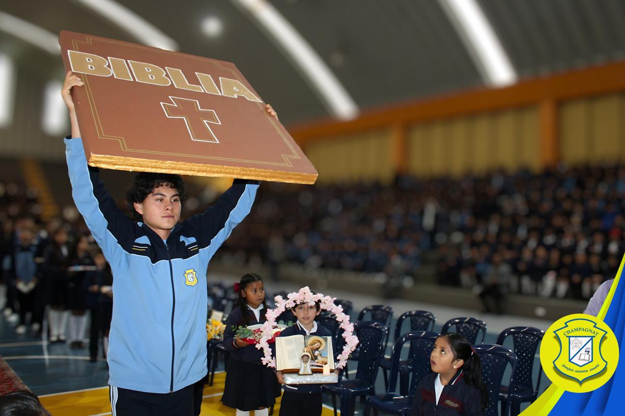 Toda nuestra comunidad educativa —preescolar, primaria y bachillerato— se reunió en el Coliseo Champagnat para celebrar con alegría y fe la apertura del Mes Bíblico.