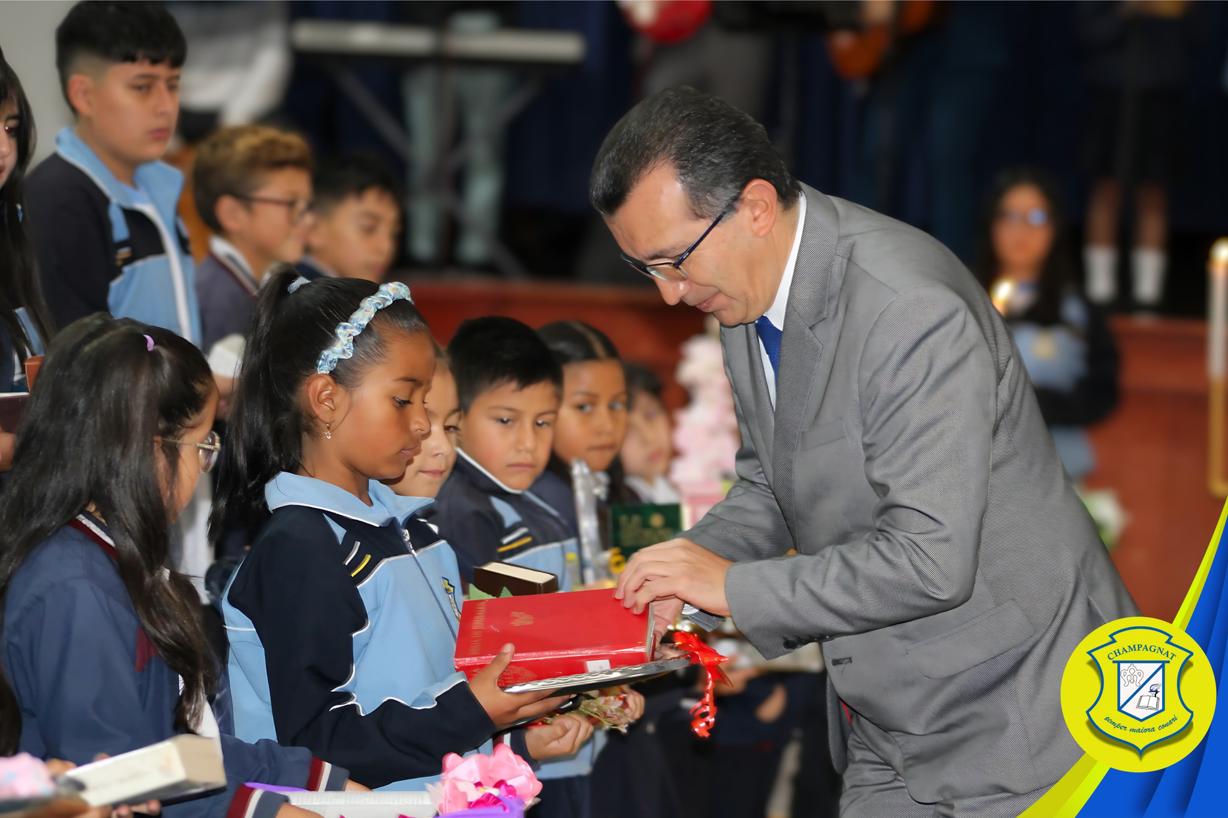Durante la ceremonia, un estudiante por curso participó en la procesión con la Biblia, recordándonos la importancia de la Palabra de Dios como guía en nuestra vida cotidiana. Con este acto simbólico, reafirmamos nuestro compromiso de vivir con valores cristianos y maristas, inspirados en el mensaje del Evangelio.